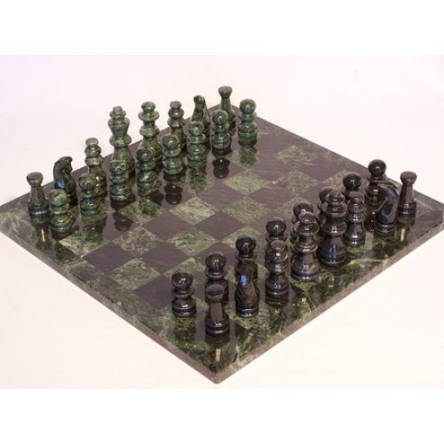 Chess set, marble, green/black, green edge,16 Marble, Glass, Onyx”