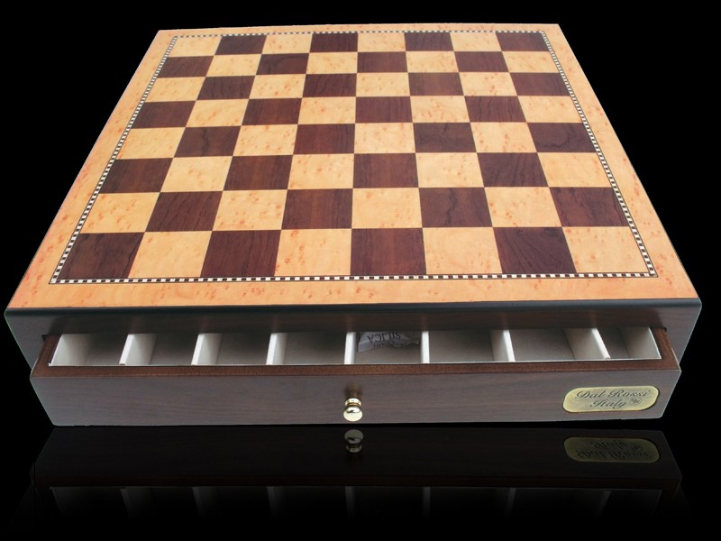 Dal Rossi Chess Box with Drawers. Drawers have separate felted compartments for individual chess pieces.