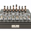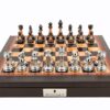 Staunton Metal Chess Set on black PU leather bevelled edge Chess Box 18″ with compartments