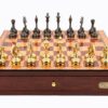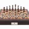 Staunton Metal Chess Set On brown PU leather edge Chess Box 18″ with compartments