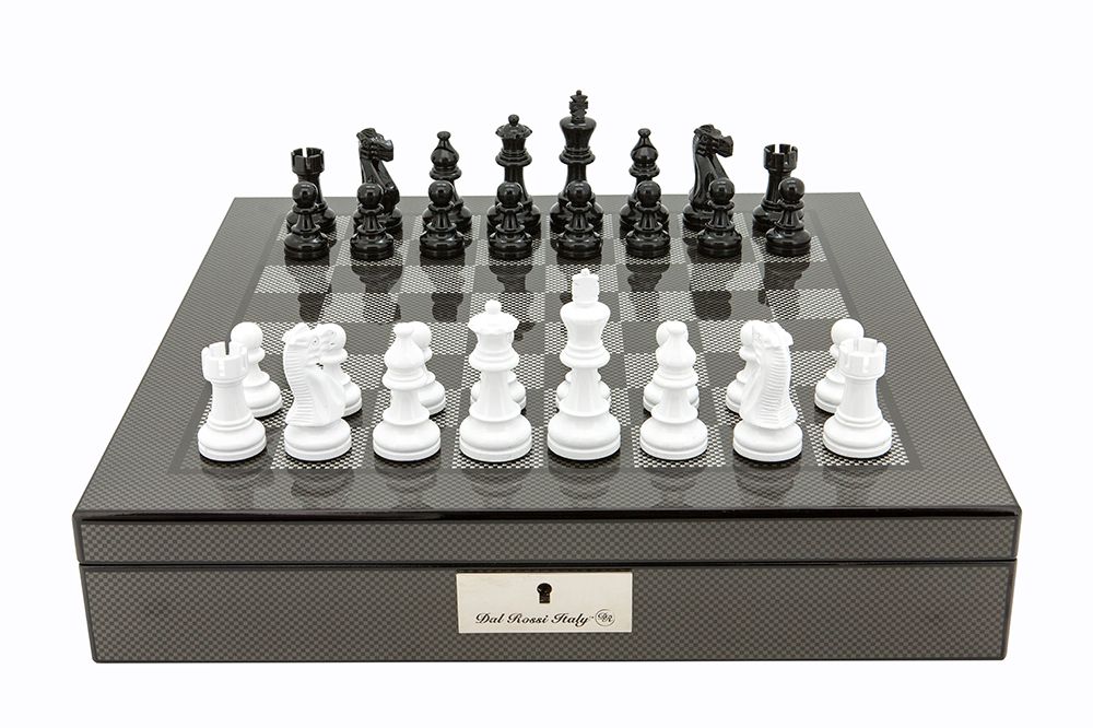 Black and White Chess SetOn carbon fibre finish Chess Box 16″ with compartments