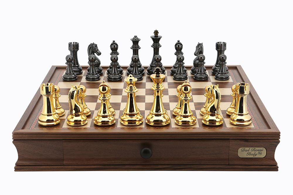 Dal Rossi Italy Gold & Black Titanium Chess Set 20″