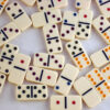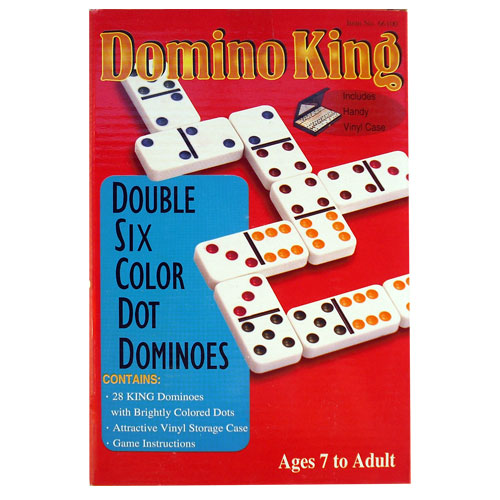 Dominoes Double 6 Coloured. Set of 28, brass spinner, coloured dot