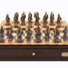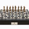 Medieval Pewter Chess Set on walnut finish Chess Box 16″ with compartments