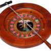 Deluxe 16″ Boxed Roulette Set. Set includes 16″ roulette wheel, felt layout, 120 hot stamped chips, 2 steel balls, 2 packs of playing cards & rake.