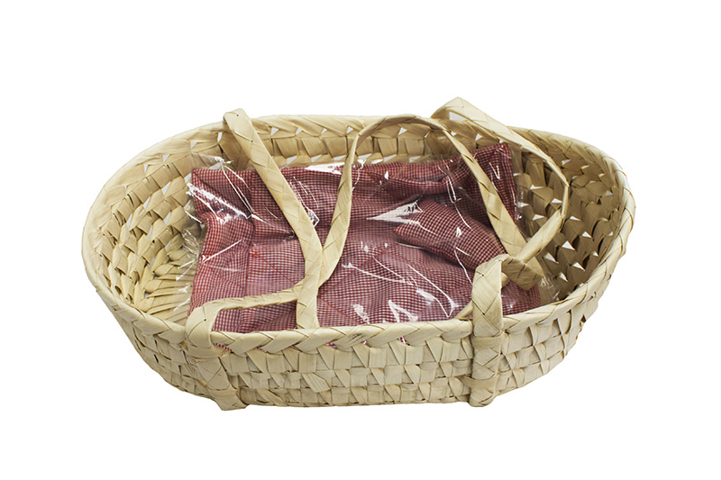 This woven seagrass carrier is perfect for your little ones to carry around their dolls. Our seagrass carrier includes bedding (red blanket and pillow) and a double handle. Enhancing Imaginative play encourages children to express themselves through role-play and develop a sense of identity. Imaginative play also develops language and communication skills along with learning to listen and negotiate with others.