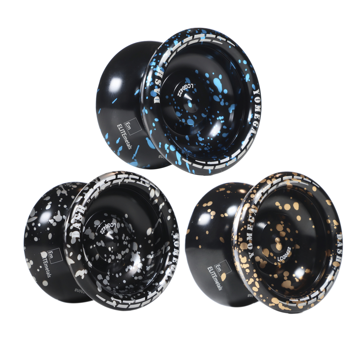 - THE YOMEGA DASH: An aluminum metal unresponsive ball bearing Yo-Yo, features a wing shaped body design, a weighted perimeter, and a standardized C size ball bearing with internal silicone response pads